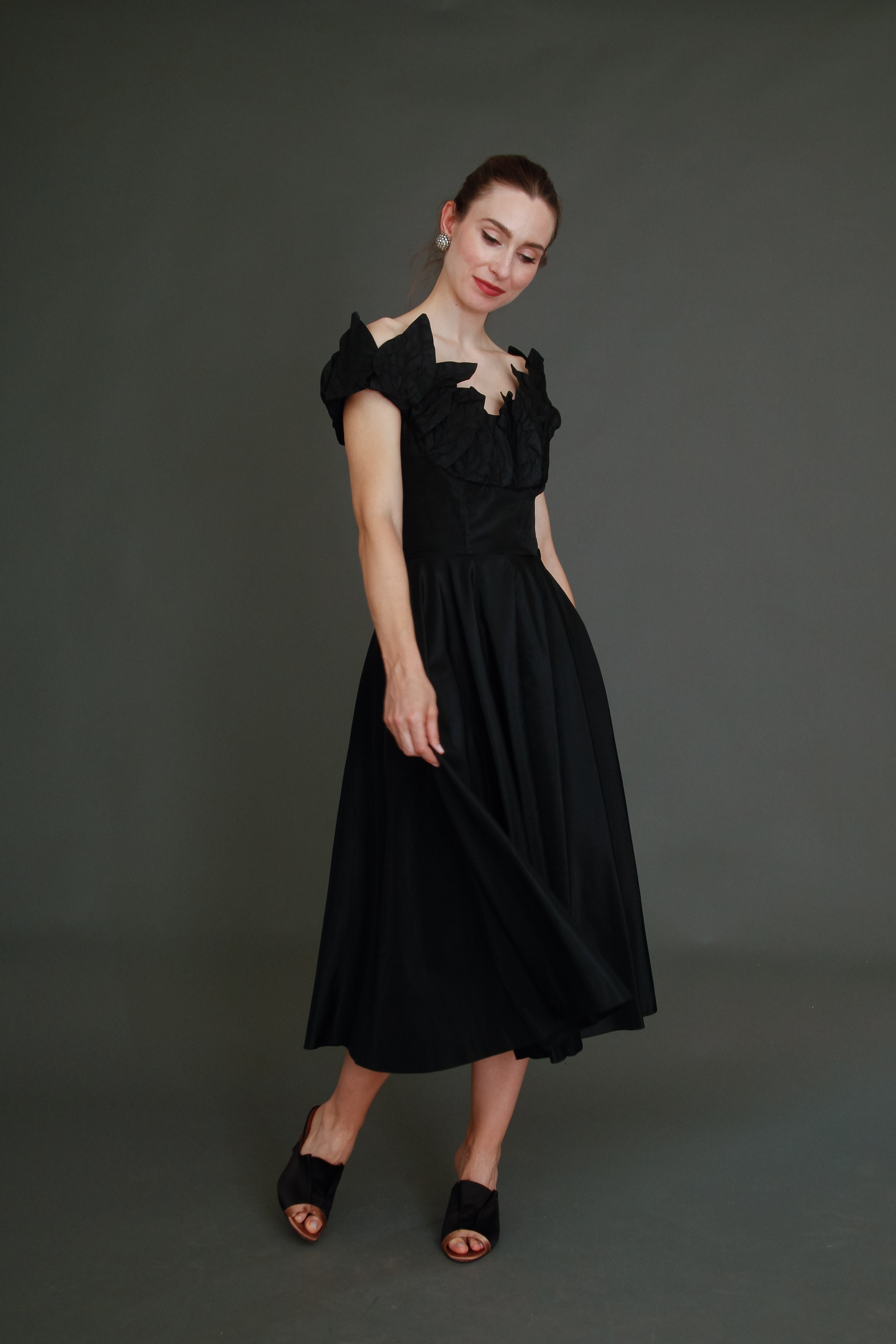 1950 Stunning Ceil Chapman Black Faille Cocktail Dress -