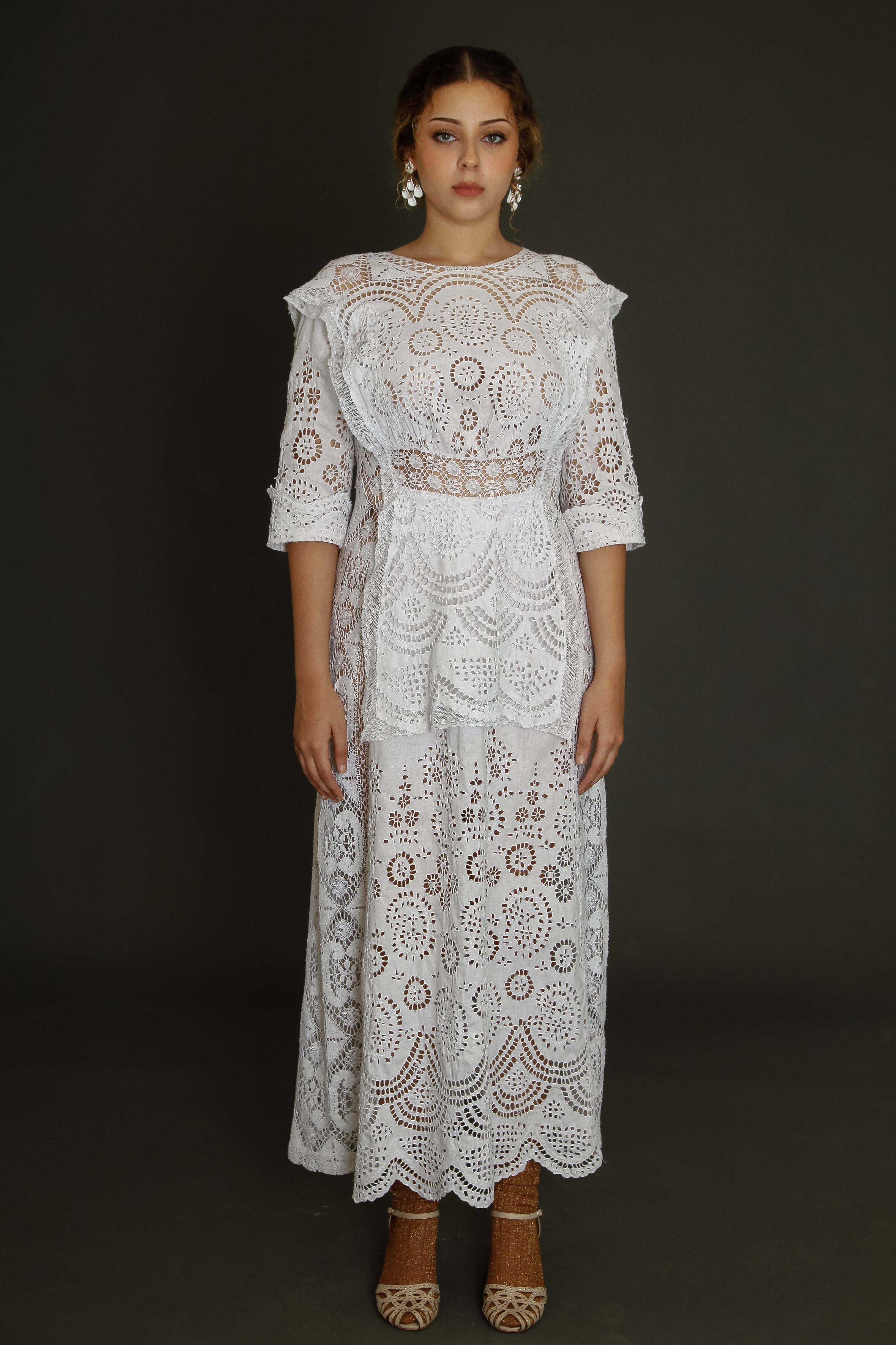 1970 Broderie Anglais White Ruffles Maxi Dress -