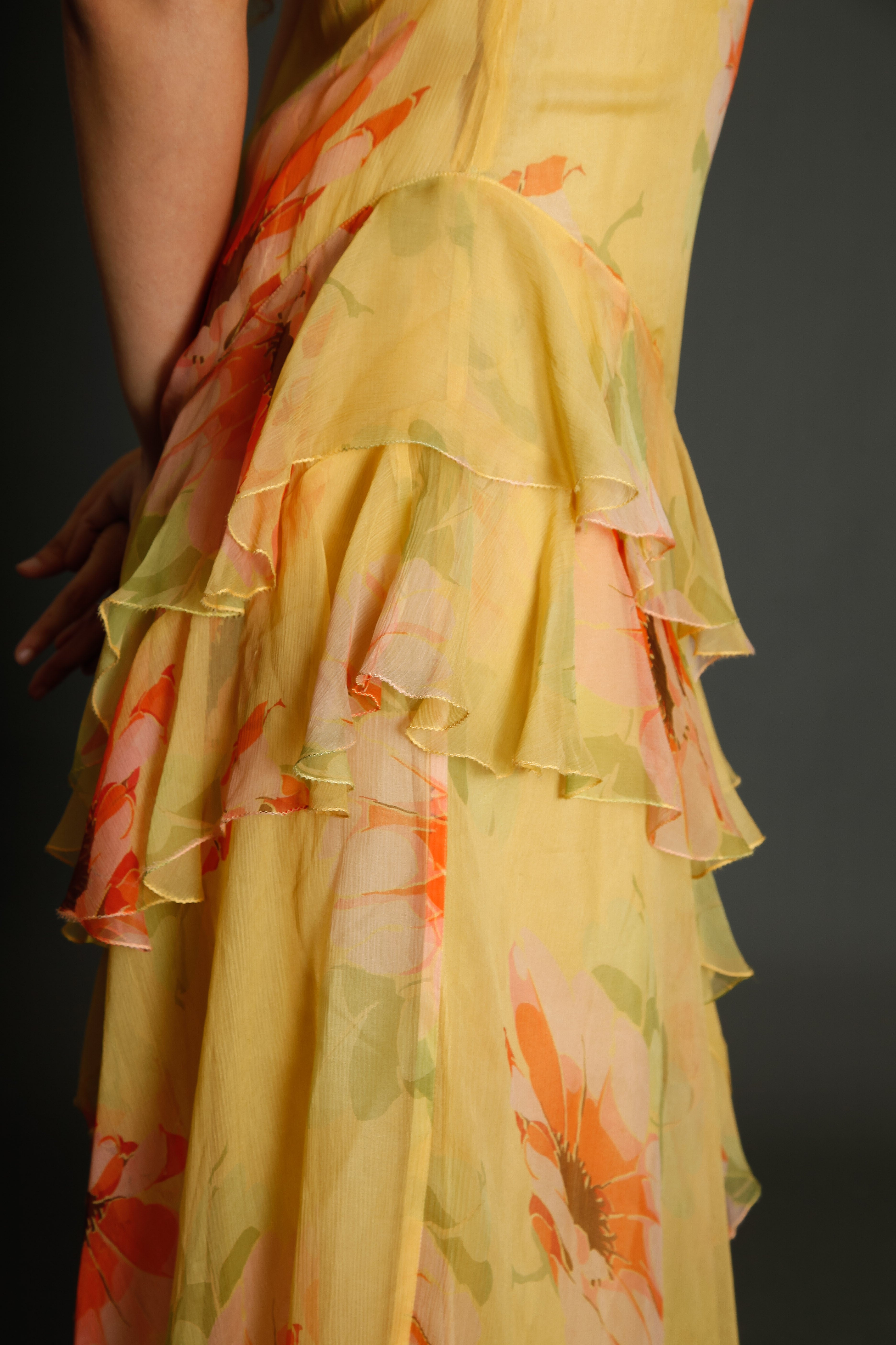 30s Floral Silk Chiffon Ruffle Dress -