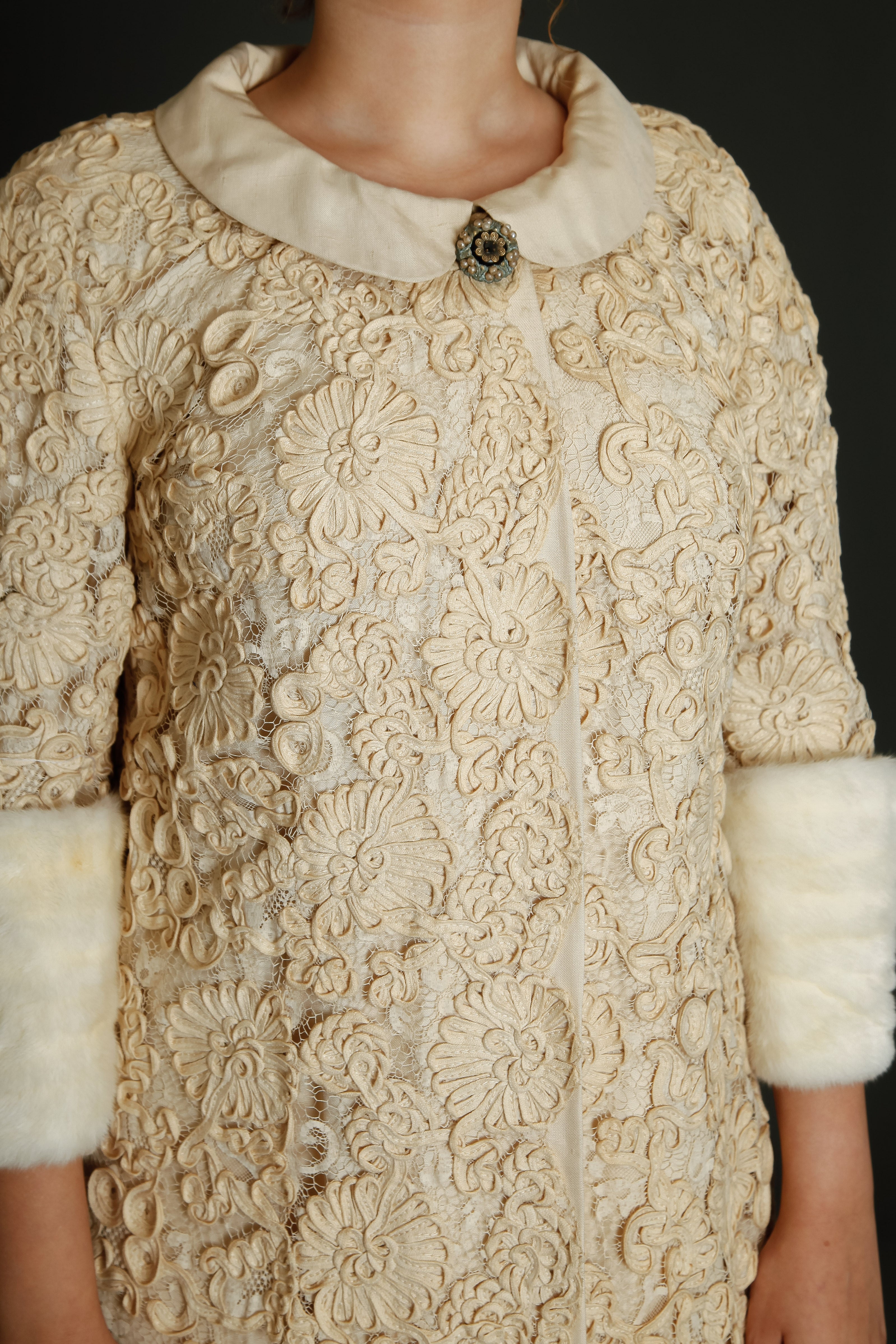 Early 60s Couture Lace Coat with Soutache Embroidery -